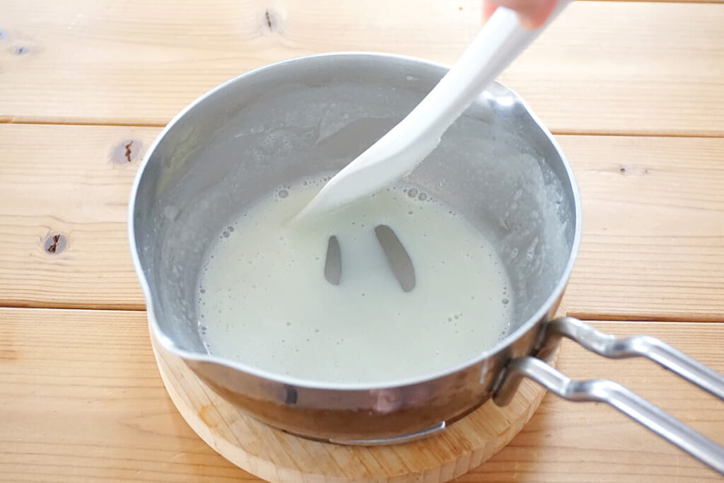 逆に重めの練乳に仕上げたい場合は、もうすこし煮詰めるとよいでしょう。