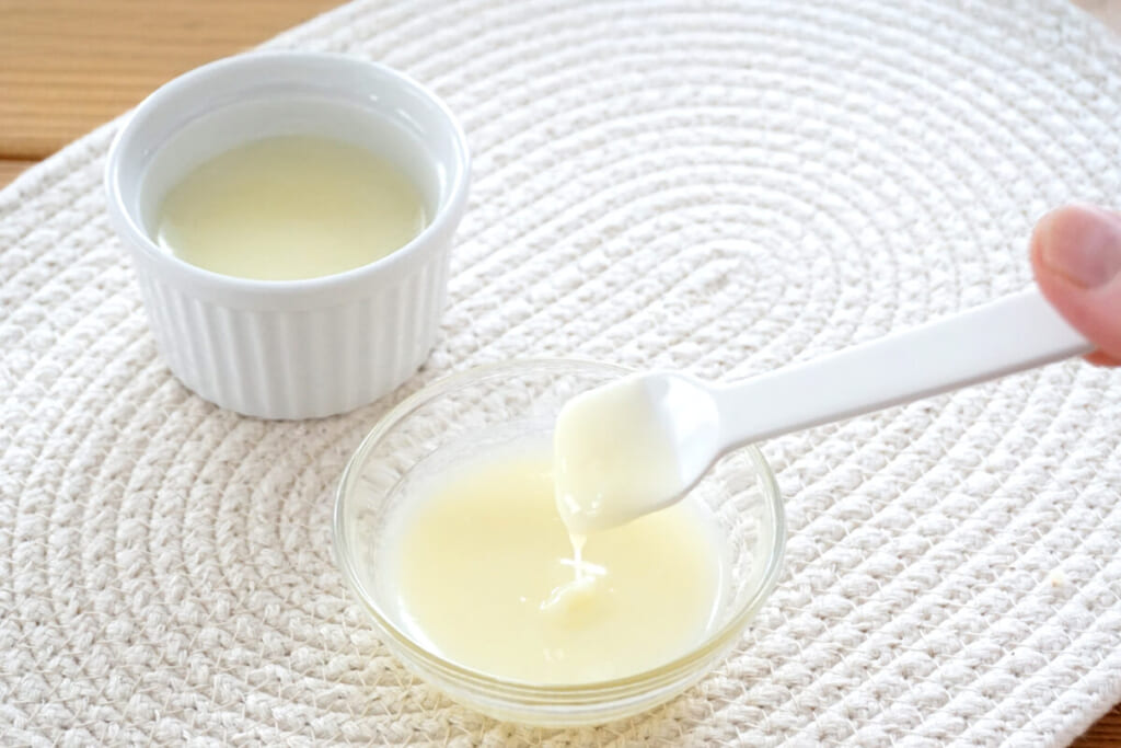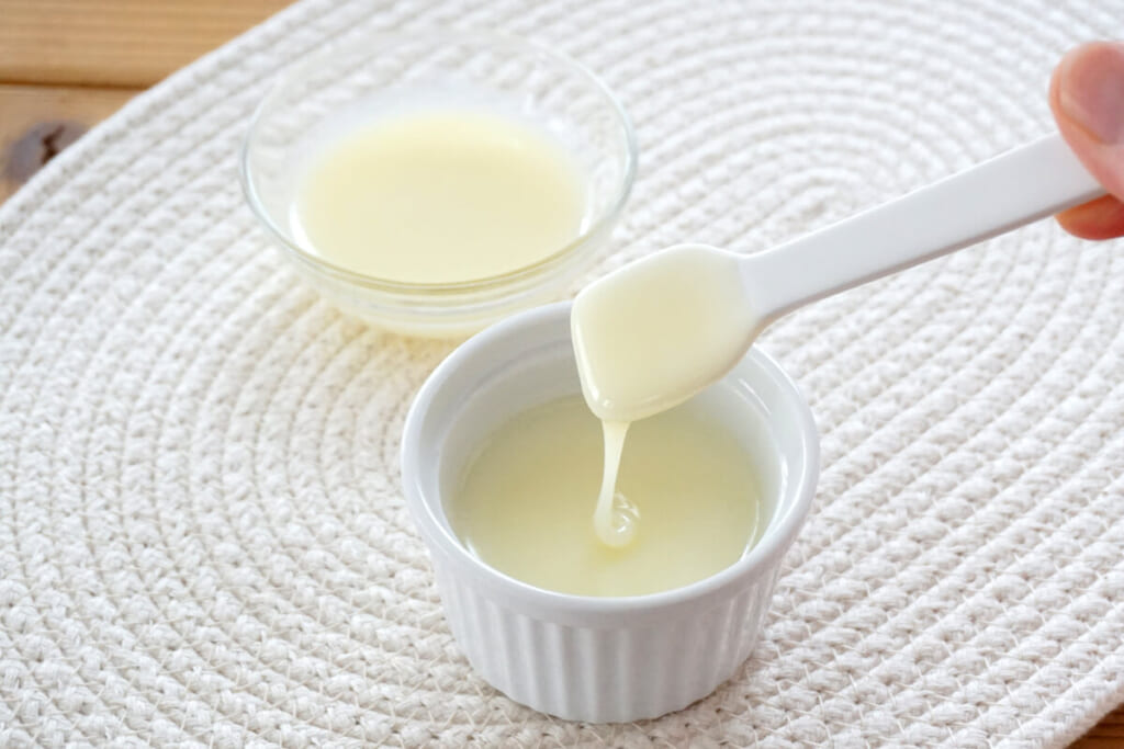 思っているよりも「ゆるめ」にするほうが、かけやすい練乳に仕上がります。