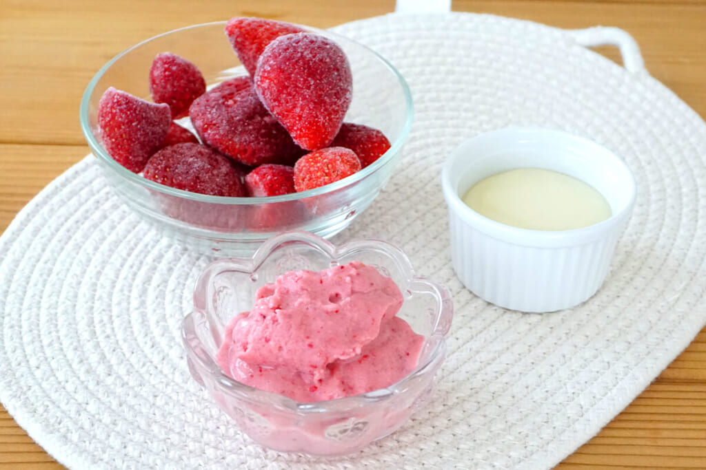 半解凍したいちごと練乳を合わせ、ミキサーで攪拌する。