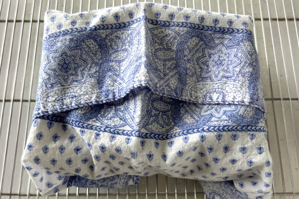 型から外し(ペーパーは外しても外さなくてもOK)、布巾などに包んだ状態で、完全に冷ます。
