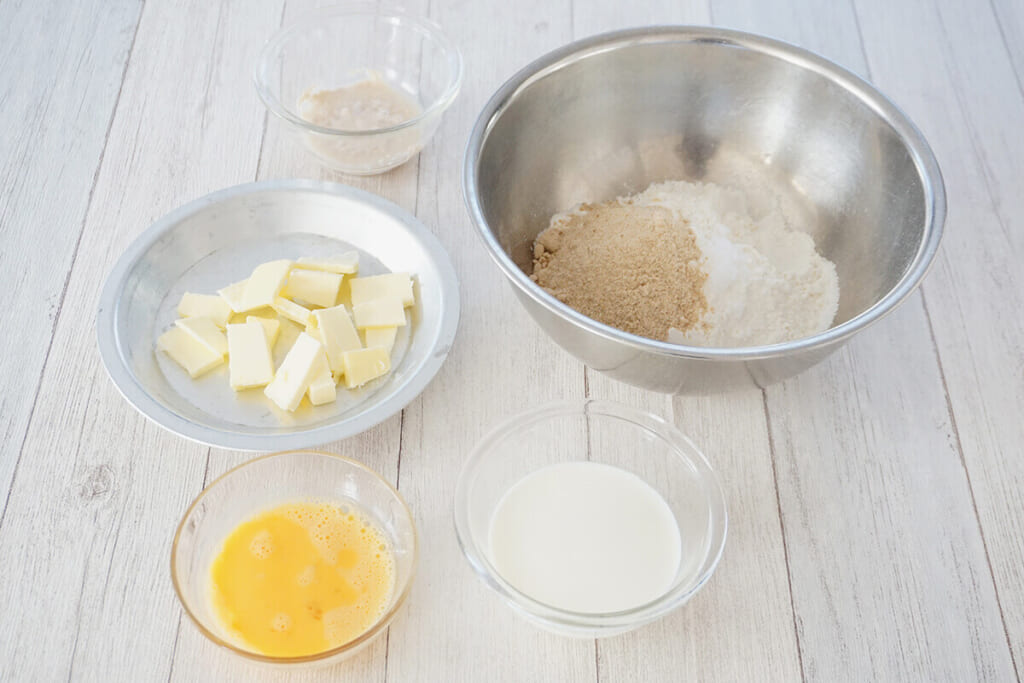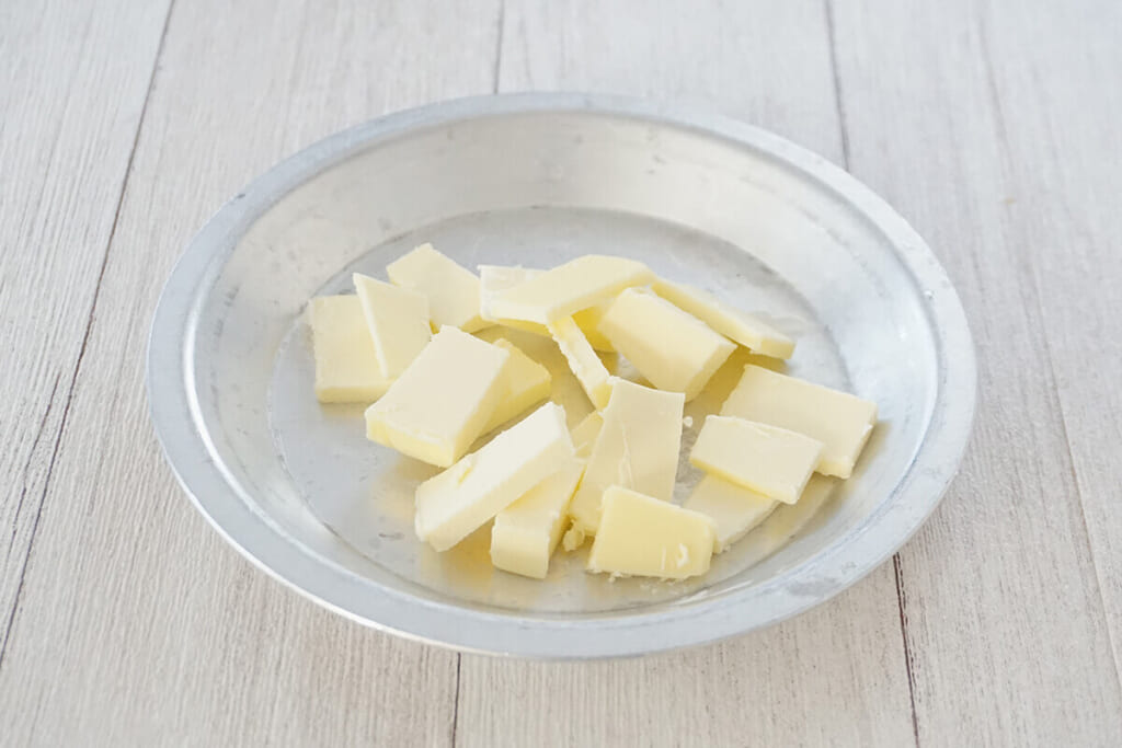 そのため、バターは小さめ、または薄くカットして生地になじませやすくします。