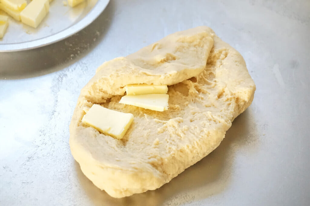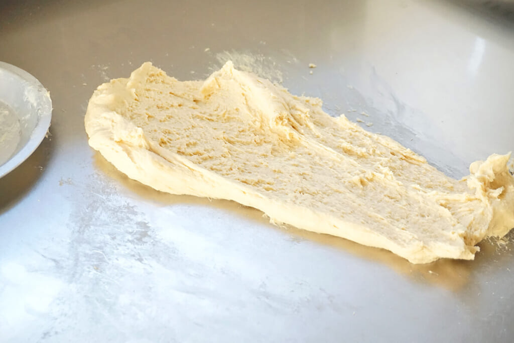 菓子パンなどにもよく使われる生地で、バターを生地に練り込んでいく工程が特徴です。