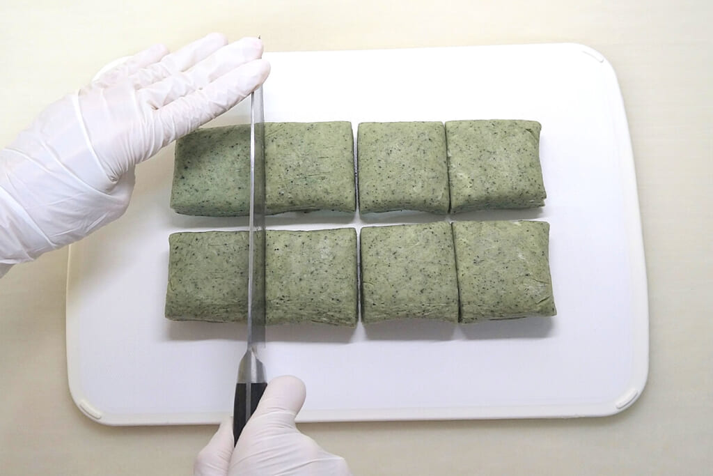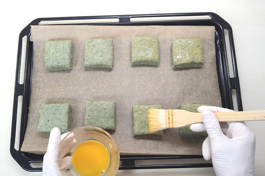 より香りが感じられるように、よもぎパウダーは倍量で、牛乳は10g増やしています。甘さ控えめにしたかったのでスコーン生地に甘納豆は入れずに作っています。