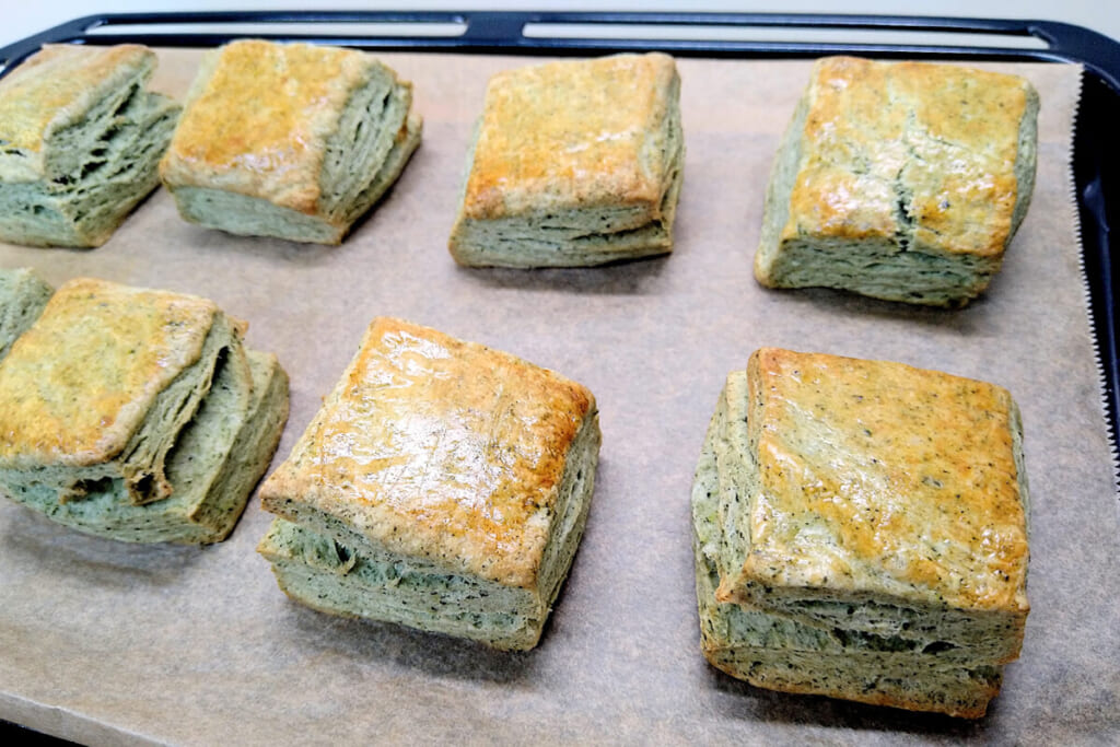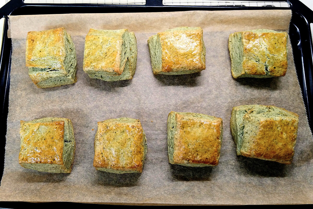軽く温めて有塩バターをつけて食べる「よもぎのプレーンスコーン」もほんのり甘くて美味しいですよ!