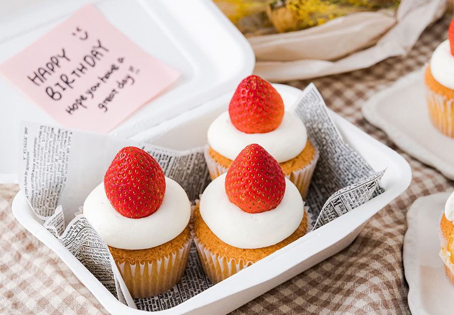 ケーキピックやラッピング容器にこだわって、写真映えの良いお誕生日カップケーキに仕上げましょう。