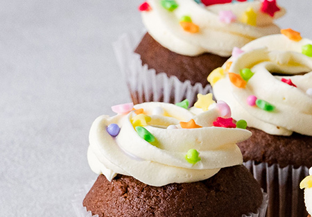 バタークリーム風ミックスやトッピングシュガーでポップにデコレーションすれば華やかな仕上がりになり、