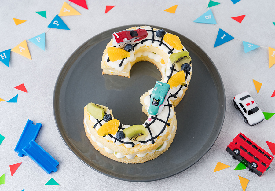誕生日を迎えるお子様の年齢を表現できるナンバーケーキ。
