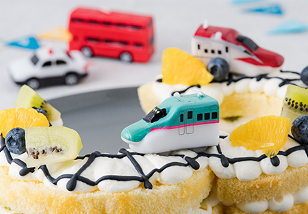 プラレールやサッカーボールなどのロウソクでデコレーションすれば、特別な思い出に残るお誕生日ケーキになります。