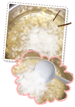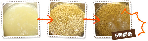 これは”アク”だね!雑味が出てしまうから、マメにすくってあげよう♪…豆だけに!!