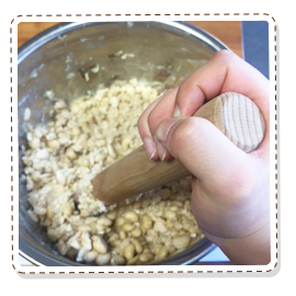 ほかほかなうちにマッシャーやすりこぎなどでつぶしておこう!