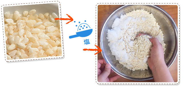 さあ、塩を加えて手でやさしくほぐして・・・