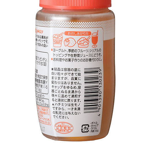 * ハチミツは生モノですので一才未満の乳児には与えないで下さい。
