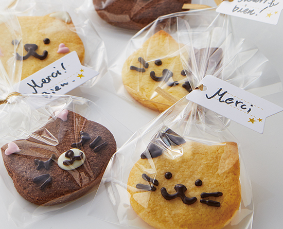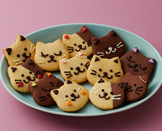 - くりかえし使えるオリジナルネコちゃんクッキー型付き。 スタッフ内でも「かわいい!」と人気のねこちゃんの顔のクッキーを、プレーン味とココア味で作れます。2色の生地をつかってアレンジしてもかわいいですね!