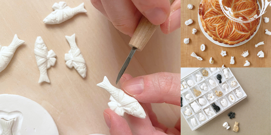 フランスの伝統菓子「ガレット・デ・ロワ」の中に入れる幸運を呼ぶ小さな陶磁器「フェーヴ」を専門に制作。