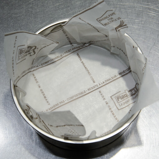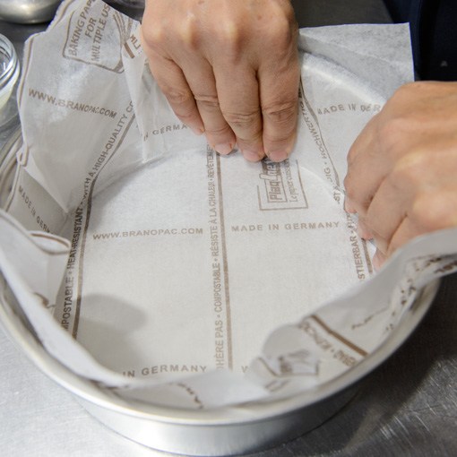 型にオーブンペーパーをくしゃくしゃと敷いておく。