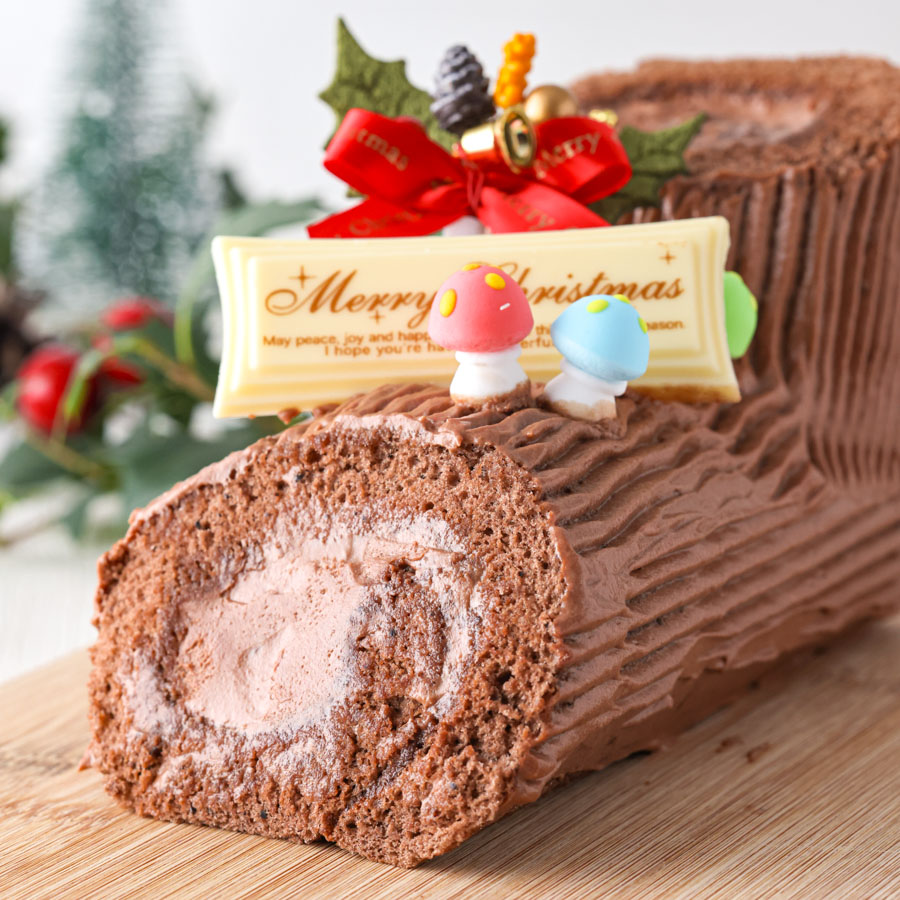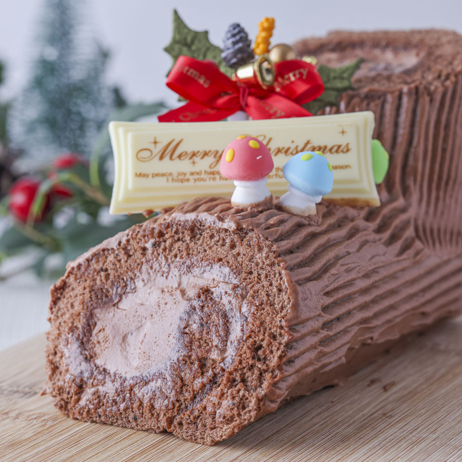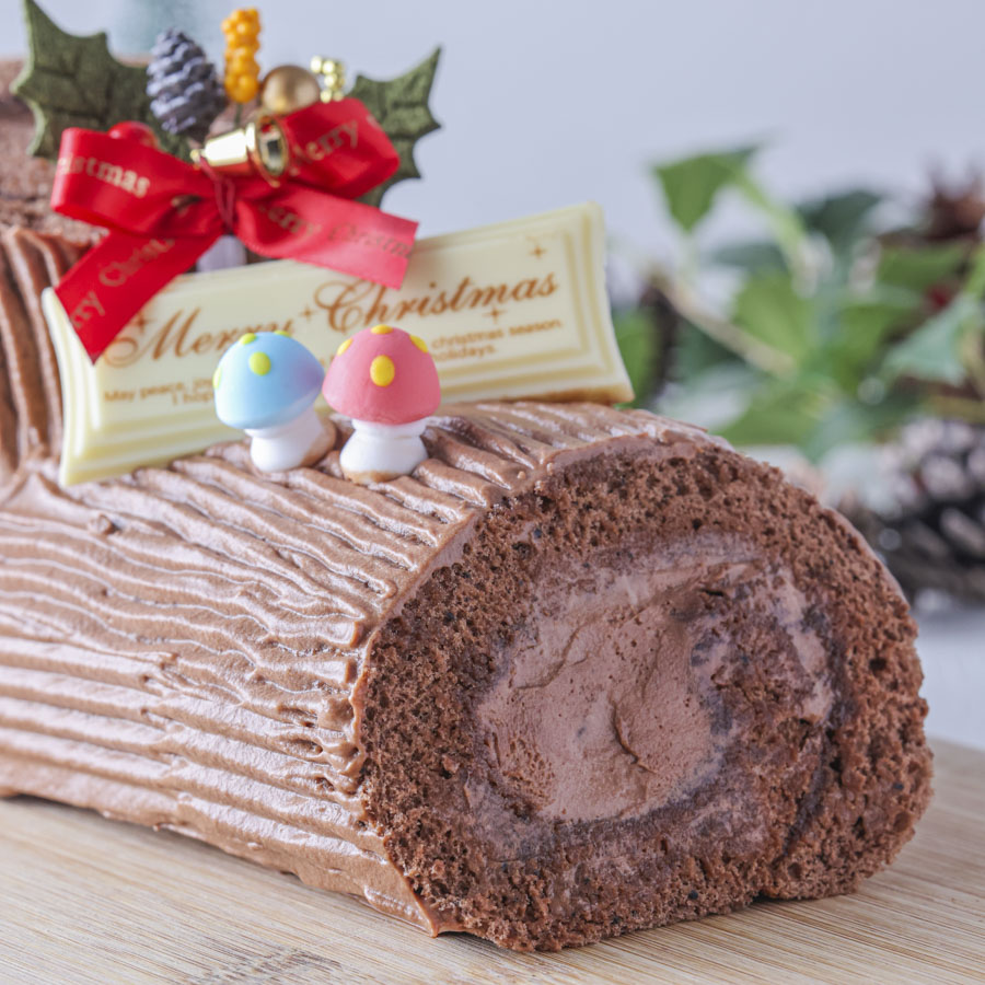 みんな大好きなココア生地とチョコクリームのスタンダードな「ブッシュ・ド・ノエル」です。洋酒を使っていないので、お子様も大人もお楽しみいただけます。