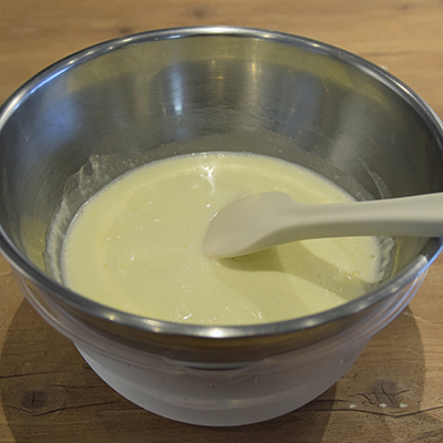 フツフツしてきたら火からおろして清潔なボウルに移し、氷水にあて冷まします。※温度の伝わりやすいステンレスボウルがオススメです。