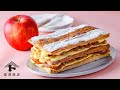 間にはりんごとカスタードクリーム、ナッツをたっぷりとはさみました。