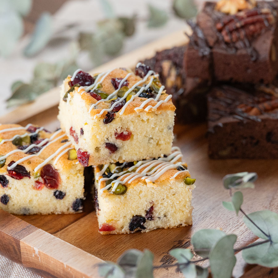 スイートチョコで作るチョコレートケーキのブラウニーとホワイトチョコレートで作るブロンディ。ナッツやベリーを組み合わせて、お好みでチョコレートをかければプレゼントにも喜ばれます。