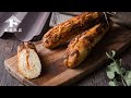 中心に1本クープを入れる。この時、オリーブオイルをクープナイフにつけながら入れると良い。予熱完了したオーブンにフランスパン天板ごと入れ、オーブン内に霧吹きをたっぷりして230度で10分程度焼く。