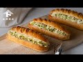 パンオレ(牛乳パン)を細長く焼いたフランスの菓子パンの定番ブレッドに色鮮やかなピスタチオのクリームを挟みました。