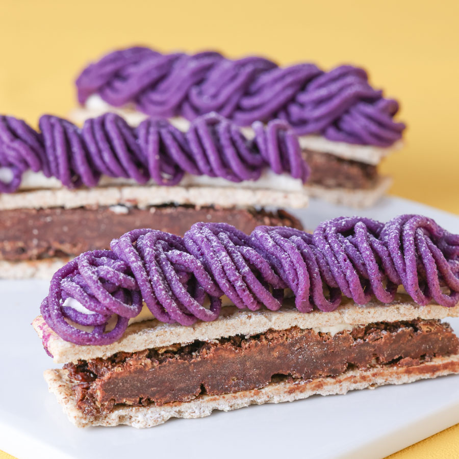 紫いもペーストを使って作る、スティックタイプのスタイリッシュなモンブランです。