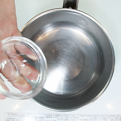 鍋にグラニュー糖と水を入れてグラニュー糖が溶けるまで温めます。
