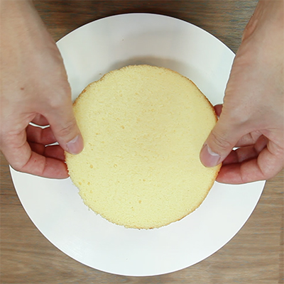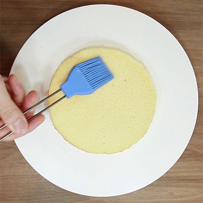 スライスしたスポンジ1枚を回転台にのせてシロップを塗ります。