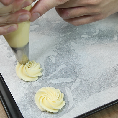 今回の絞りだしクッキーは全卵ではなく卵白を使用することで軽く絞りやすいクッキーです。