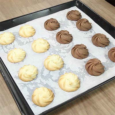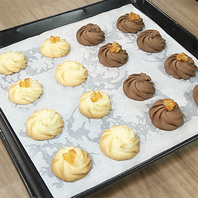薄力粉にはドルチェを使用し焼き上がりの香りも良い絞りだしクッキーです。