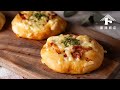 スイートコーンを練りこんだ生地を薄く成型しベーコンとチーズをのせて焼きあげるピザ風コーンパン