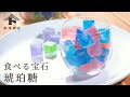 琥珀糖とは、砂糖が結晶化し、食べると外はシャリッと、中は寒天ゼリーのように柔らかい食感が特徴の江戸時代から伝わる和菓子です。