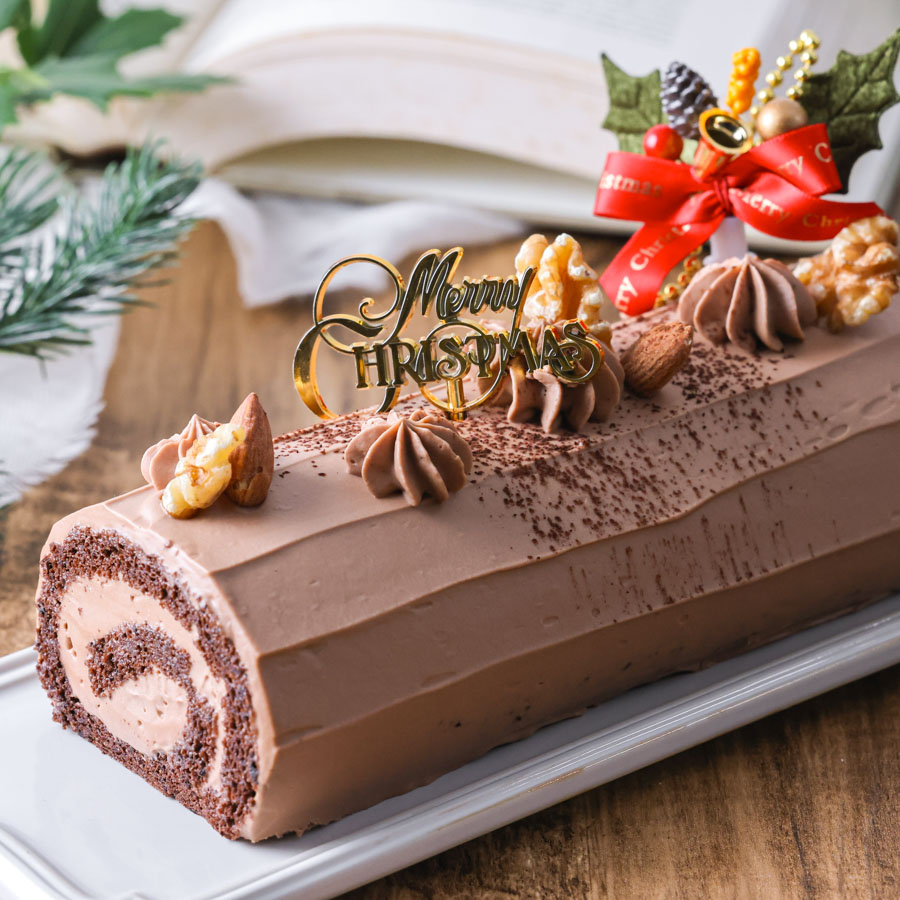 クリスマスの丸太をイメージしたケーキクリスマスの定番菓子ブッシュドノエル。