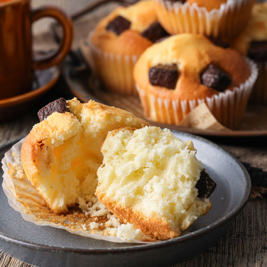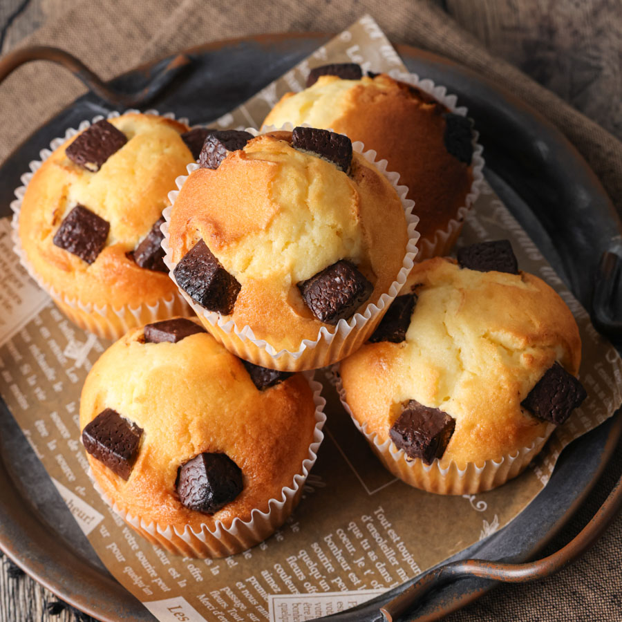 ゴロっと大きめのチョコレートチャンクで作る簡単マフィン。