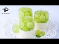 固まった8のブランマンジェの上に、カットしたマスカットを適量入れる。
