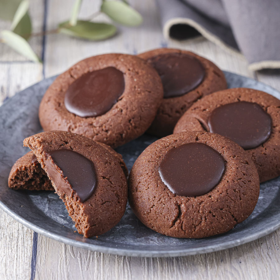 10で作った生地のくぼみに、13のガナッシュを流して冷蔵庫で固めて完成。