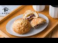 このレシピはあんことぎゅうひを包んだそぼろパンで、いろいろな食感が楽しめる1品です。