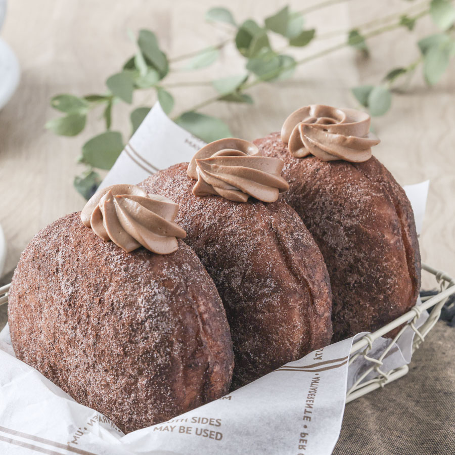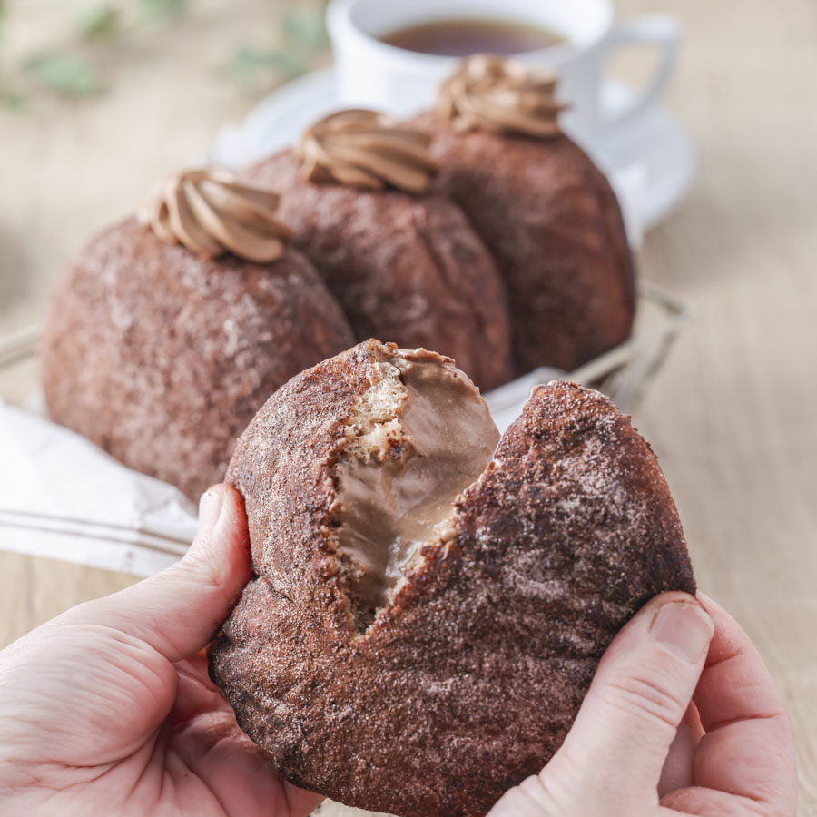 周りにはココアシュガーをたっぷりとまぶし少しビターでスイートな味わいのドーナツはチョコレート好きにはたまらない美味しさです!