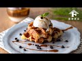 温かいクロッフルに冷たいアイスとザクザクのココアビスケットをのせるとまるでカフェで出てくるようなデザートの出来上がりです!