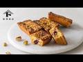 しっとり生地にトッピングしたキャンディングピスタチオはカリカリと香ばしいアクセントになっています。