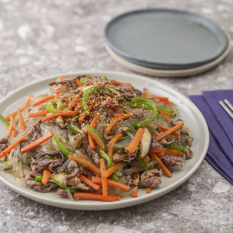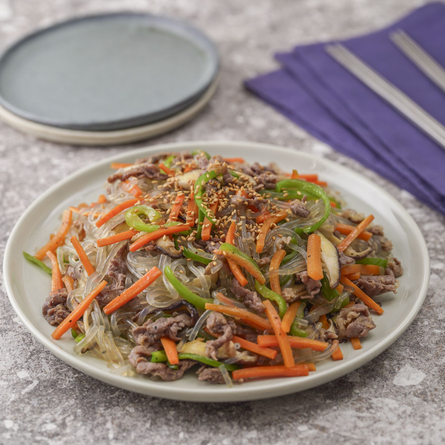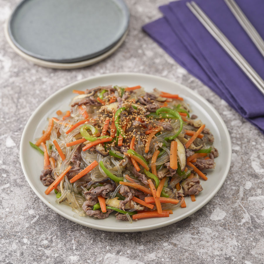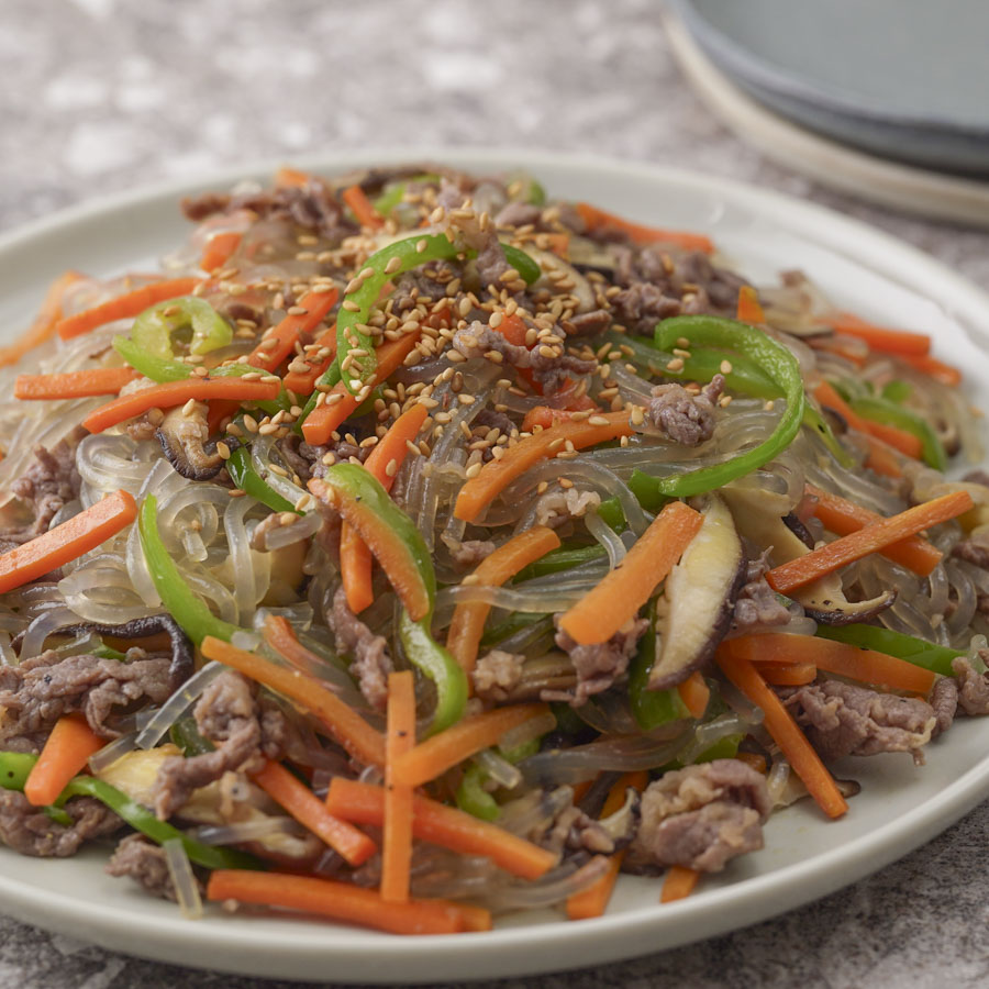 チャプチェとは春雨と牛肉、野菜を炒めた韓国家庭料理の1つ。