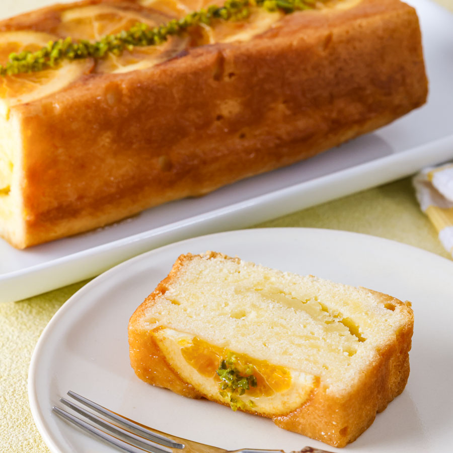 湘南ゴールドのピールの蜜漬けが入った爽やかなあんこを生地とフィリングに加えたオレンジのパウンドケーキ。