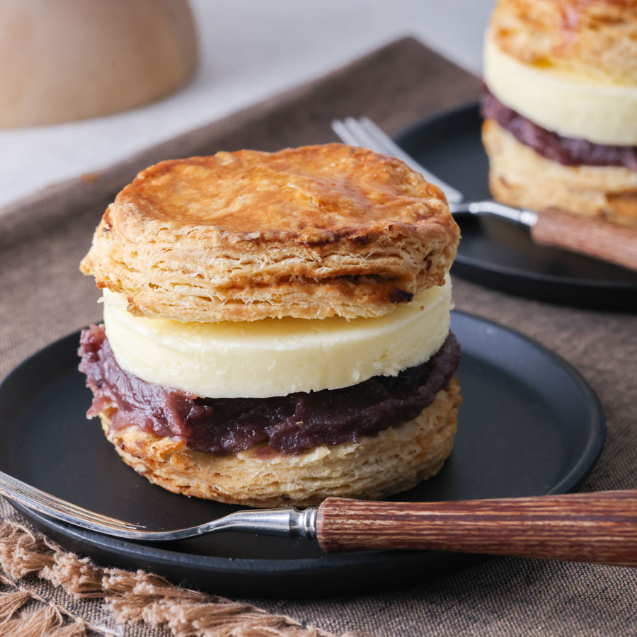 スコーンに小倉あん・フィリング用のバターを挟んで出来上がり。