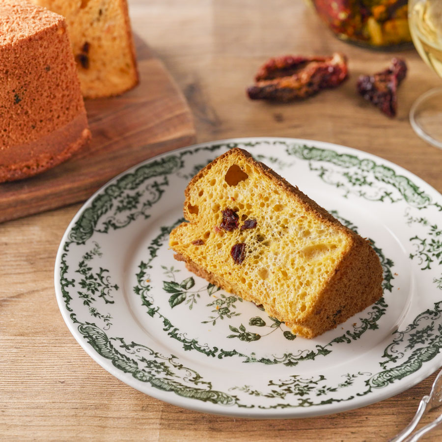 トマトとチーズ風味の甘じょっぱいシフォンケーキ。