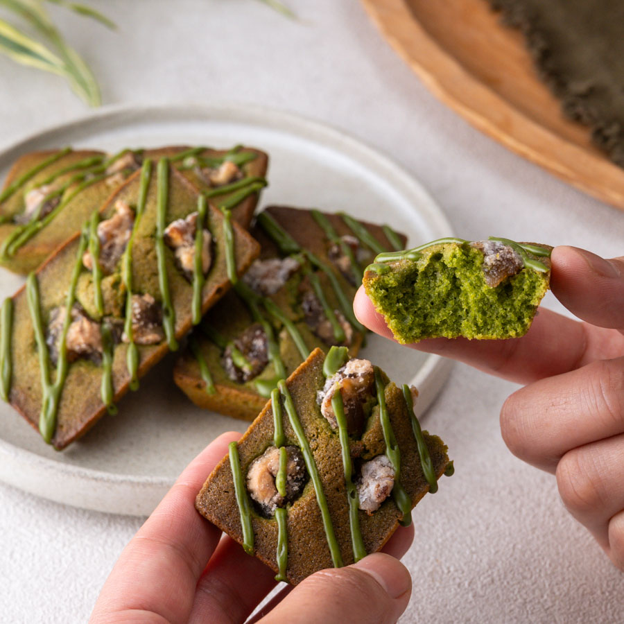 香ばしい焦がしバターとアーモンドの風味に、抹茶のほろ苦さがマッチした焼き菓子です。