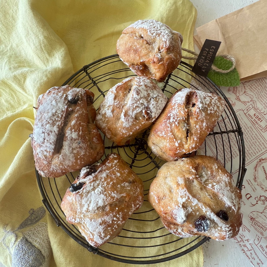 冷蔵発酵を取り入れることで、粉の旨みと具材のコクが深まり、香り高く味わい深いパンに仕上がります。しっかりとしたクラスト、もっちりした内層は、ワインやチーズはもちろん、コーヒーにもよく合います。