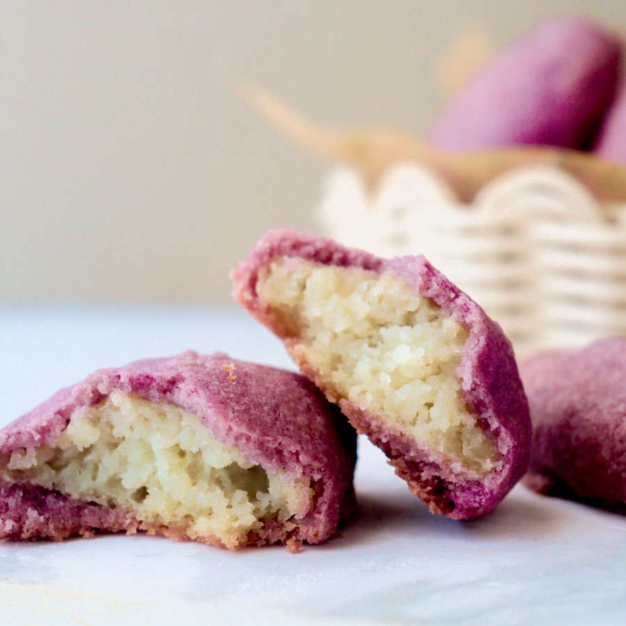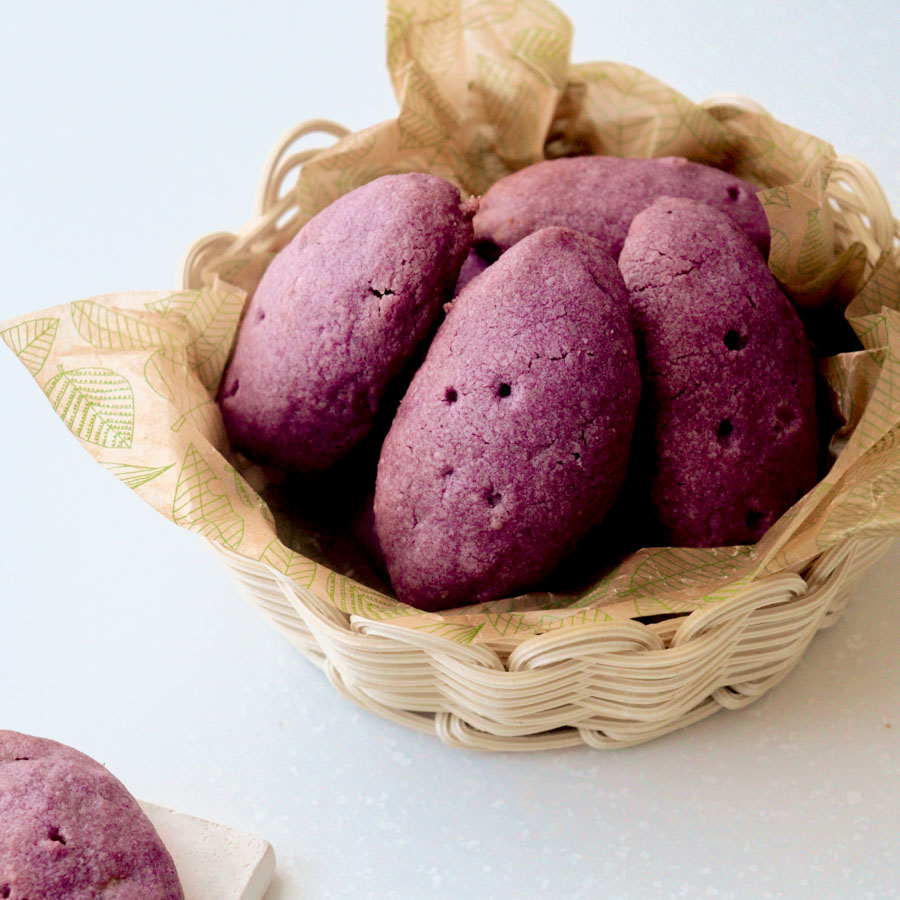 紫芋のクッキー生地で包み込んで、見た目も味わいもまるで焼き芋そのもの。