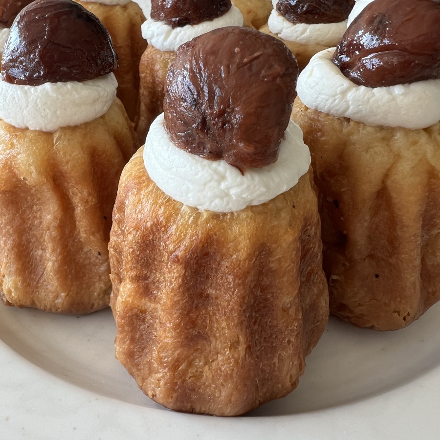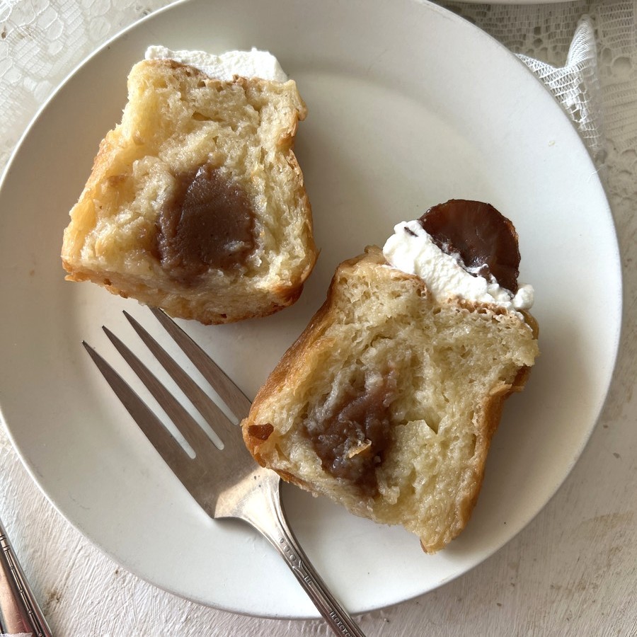 しっとりとしたブリオッシュ生地に、マロンペーストを包んで焼き上げた秋の贅沢なババ。焼き上がりを香り豊かなラム酒入りシロップに浸し、じっくり休ませることでふんわり柔らかく仕上がります。仕上げに軽やかなホイップクリームと栗の渋皮煮を飾れば、見た目も華やかで特別なデザートに。