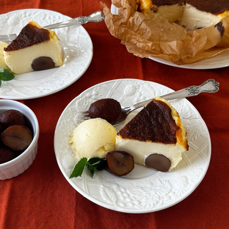 栗渋皮煮をふんだんに忍ばせたバスクチーズケーキ。