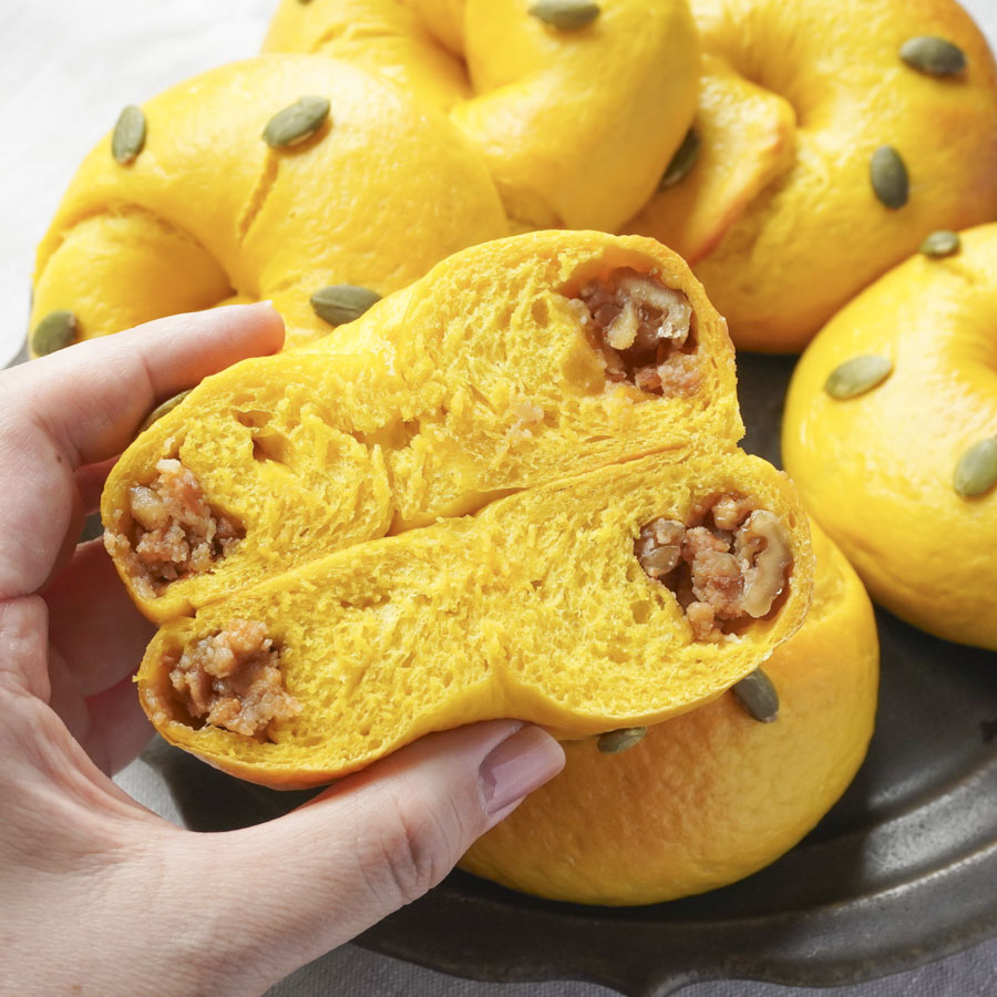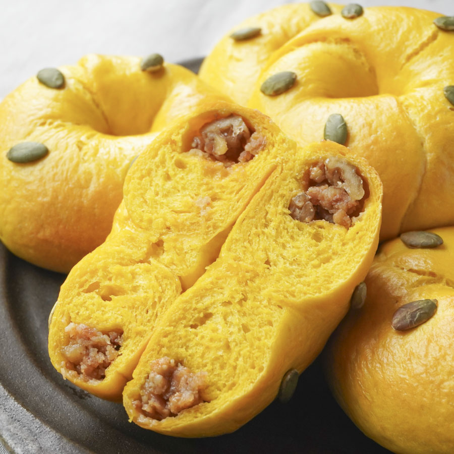 ほんのり甘いかぼちゃ生地はふんわり食べやすく、フィリングなしでサンドイッチにするのもおすすめ。